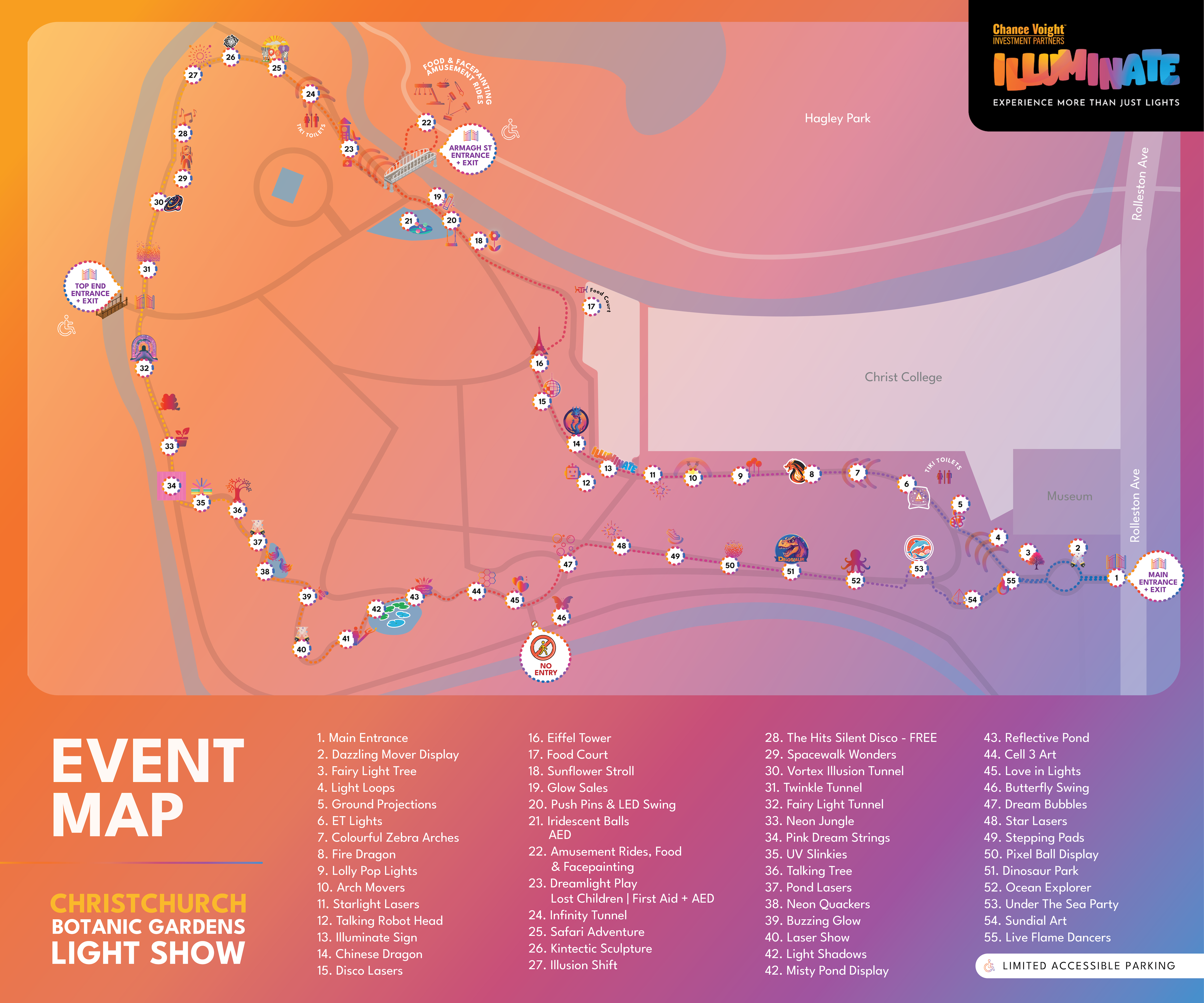 Illuminate has TWO food courts, including one in the Amusement Area 🎡 with its own entrance at the Armagh St Carpark, so skip the main gate lines and come straight in for something to eat or a ride! Cash & card available!